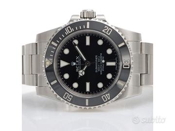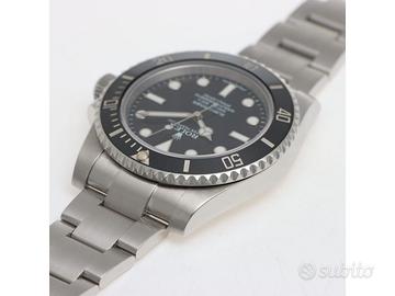 Clover Gioielli pone in vendita Rolex Submariner No Date Ref. 114060 con quadrante nero, cassa di diametro 40 mm in acciaio, corona di carica a vite, Ghiera girevole unidirezionale con inserto in ceramica nera. Bracciale modello Oyster in acciaio. Orologio in ottime condizioni. Garanzia 2015. Full Set. Revisionato internamente a Marzo 2026. L'orologio è accompagnato da scatola e garanzia ufficiale Rolex oltre al nostro certificato fotografico valido 12 mesi che ne garantisce il buon funzionamento, l'autenticità e la lecita provenienza. Gli orologi sono tutti visionabili su appuntamento presso la nostra Boutique. TERMINI E CONDIZIONI Si ricorda che sono esclusi dalla nostra garanzia della durata di 12 mesi il deterioramento dovuto a usura e danni causati da un uso improprio e/o da trattamento inadeguato, perdita e furto oltre a interventi effettuati da terzi non autorizzati. Il pagamento di eventuali dazi doganali è a carico del cliente.