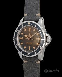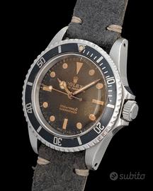 Rolex Submariner (No Date) Ref. 5513 Gilt Brown Dial BrandRolex ModelloSubmariner Referenza5513 Diametro cassa (mm)40 Colore quadranteMarrone Cristallo/vetroPlexiglass MovimentoAutomatico Cinturino/braccialePelle CondizioniOttimo Anno1964 Rolex Submariner ref. 5513. Gilt. Brown Dial. N/S 107XXXX. Anno 1964. Carica automatica. Cassa in acciaio. Cinturino in pelle grigio. Diametro 40mm. Vetro Plexiglass. Senza numeri. Lunetta in acciaio non coeva del periodo. Calibro/meccanismo 1520. Calibro di base 3135. Numero di pietre 26. Orologio "potente" ed "attrattivo". Classico esempio della bellezza di segnatempo Vintage. La "natura" ha creato fascino e colori, senza sforzo. Comprare un orologio deve essere un piacere, comprarlo "giusto" deve essere un dovere. Importante è comprare bene, non decidere solo sulla base del costo, ma dare importanza alla qualità e alla coevità. Compra, cura ed ama il tuo segnatempo! "Orologi Vintage, l'Arte del Tempo! " Visita il nostro sito (www.rx23.it) per visionare foto aggiuntive. WHATSAPP: SITO WEB: www.rx23.it INSTAGRAM: rxvintagewatches