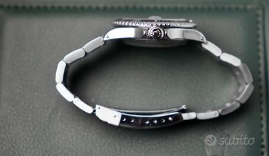 Rolex Submariner Ref. 16610 Zubmariner Zorro dial REF: 16610 Marca: Rolex Condizioni: molto buone Nome/Numero modello: Submariner Seriale: N Anno: 1992 Movimento: automatico cal. 3135 con 48 ore di riserva di carica Materiale cassa: acciaio Ghiera: in acciaio nera girevole unidirezionale Quadrante: Nero trizio Bracciale: Oyester 93150 Finali 501B Rolex Submariner Ref. 16610 cal. 3135. L’orologio condizioni molto buone, movimento automatico con 27 rubini e 48 ore di riserva di carica, il fondello è a vite. L'orologio misura 40 mm, mentre il cinturino 20 mm. Questo "Submariner" ha quello che i collezionisti a volte chiamano un quadrante "Zorro" perché la S in "Submariner" assomiglia a una Z al contrario. Orologio revisionato di recente e perfettamente funzionante OROLOGIO CON NOSTRA GARANZIA DI UN ANNO (NO GARANZIA ROLEX) OROLOGIO VISIBILE PRESSO IL MIO NEGOZIO DI PADOVA PREVIO APPUNTAMENTO. DICHIARO CHE L’OROLOGIO È ORIGINALE IN OGNI SUA PARTE