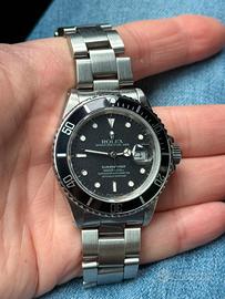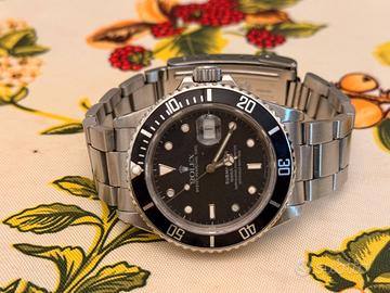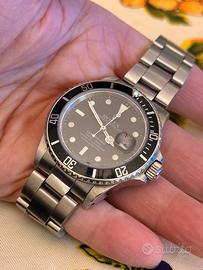 Rolex Submariner ref 16800 Seriale 93xxxxx Anno 1986/6 Referenza transizionale Vetro zaffiro Rimessa rapida del datario No scatola e garanzia Viene rilasciata dichiarazione lecira provenienza 6 mesi garanzia sul funzionamento Dichiaro che l’orologio e’ originale
