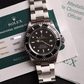 Negozio con sede fisica (nella Rep. di San Marino, si riceve solo su appuntamento) e sito internet vende: Rolex Submariner Sea Dweller referenza 16600 T Cassa senza fori e bracciale SEl ( finali pieni ) Seriale F4**** Anno 2004 + service Rolex del 2016 Corredato di scatola e garanzia Rolex Orologio assolutamente originale e ben mantenuto. Tutti i nostri orologi vengono consegnati con nostra garanzia 12 mesi. Per visionare altri orologi cercare il nostro sito: raimondi orologi. com IG: raimondi_orologi Per eventuale spedizione si gradisce un contatto diretto, possibilità di consegna di persona previo accordi.