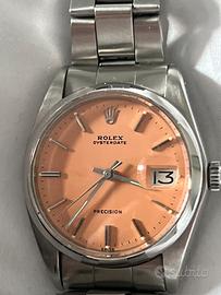orologio vintage Rolex Oysterdate Precision con referenza 6694, caratterizzato da un quadrante color salmone e bracciale in acciaio.