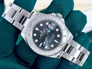 Rolex Yacht-Master 37mm, referenza 268622, quadrante Rhodium con scritta e lancetta turchese, ghiera in platino, maggio 2024.