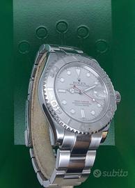 Rolex Yacht Master 40 mm vetro zaffiro quadrante platino e ghiera platino . Cassa e bracciale acciaio Oyster .