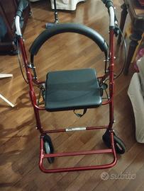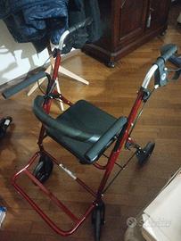 Rollator con freni per uso esterno, rosso metallizzato.