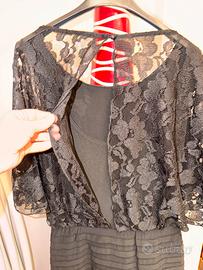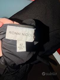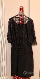 Abito cocktail donna, marca RONNI NICOLE, taglia 42/44, colore nero, modello tubino, tessuto elasticizzato nella gonna, con fodera modellante. Copertura in tessuto “pizzo” nella parte del busto. Nuovo senza cartellino.