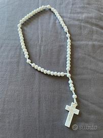 Rosario bianco, fatto a mano, il legno e corda. Lunghezza 46 cm circa.