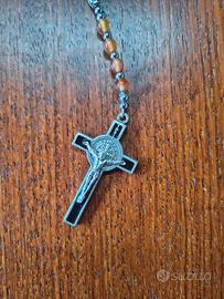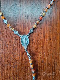 Bellissimo Rosario realizzato a mano con perle di Corniolo, come crociera la SS Madonna Miracolosa e La Croce di San Benedetto