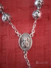 Rosario in metallo, con grani a forma di rosa e medaglia di San Marco e Maria Nicopeia.