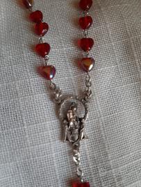 Rosario con grani rossi a forma di cuore