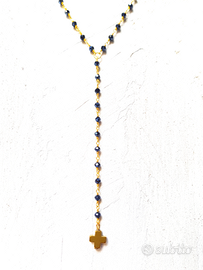 ROSARIO McLEONARD 925 SERIE LIMITATA IN BLACKSILVER PARTICOLARE CROCE IN EMATITE DORATA FATTO A MANO AD IBIZA REGOLABILE A MANO NUOVO MAI INDOSSATO NUOVA COLLEZIONE