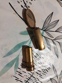 vendesi PORTA rossetto in ottone, con specchietto ricamato, che si apre una volta che si toglie il cappuccio. Buone condizioni visto l'età.