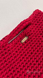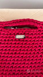 Borsa artigianale lavorata a mano in filato spesso, dal rosso intenso che non passa inosservato.