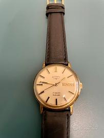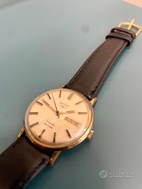 Orologio vintage Rotary automatico 21 rubini, datario completo, funzionante. Ottime condizioni come da foto, cinturino non originale. Ne scatola ne garanzia. Non accetto scambi o permute. Non spedisco, solo scambio a mano.