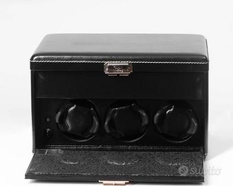 Si tratta di un un rotore per orologi (watch winder) dell'azienda Scatola del Tempo. E' un contenitore di pelle che reca 7 spazi per altrettanti orologi: - quattro spazi per conservare orologi in modo statico; - tre spazi per altrettanti rotori che conservano la carica automatica dell'orologio; - ulteriori spazi per accessori. I motori possono essere alimentati con 4 batterie di tipo D (torcia) o con trasformatore (non fornito ed acquistabile separatamente). Il modello in vendita è il 7RT, in pelle nera, nuovo, mai usato, al prezzo di 2.200 € (attualmente è acquistabile in gioiellerie o sul sito aziendale al prezzo di listino di 3.150 €).