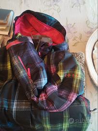 Io sono alta 1.70 circa e la taglia M con una corporatura normale va bene dai 15 ai 25 anni (io l'ho usata per tutto il liceo e per l'univerisità e mi sono trovata benissimo) è la classica giacca che si trova nei negozi sportivi nel reparto di snowboard, non è un giaccone da sci.