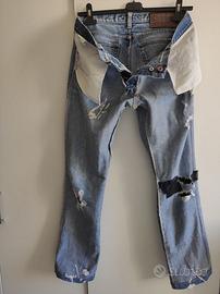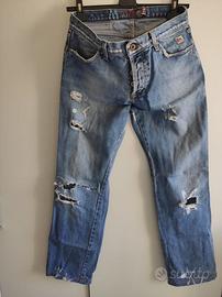 Bellissimi JEANS 5 Tasche Marca ROY ROGER'S, ORIGINALI ed AUTENTICI al 100%, Altissime Rifiniture e Qualità dei Materiali, Colore effetto Slavato con Strappi e Toppe, Taglia 34 (48) in Cotone!