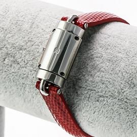 Bracciale: cinturino in vera pelle rossa con fibbia semplice.