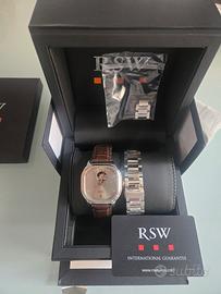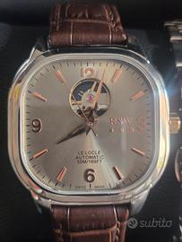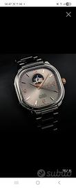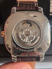 41 ×41 mm, in garanzia fino a novembre 2026, funziona perfettamente. Si vende con scatola, garanzia e cinturino in pelle aggiuntivo. Elegantissimo e movimento perfetto.