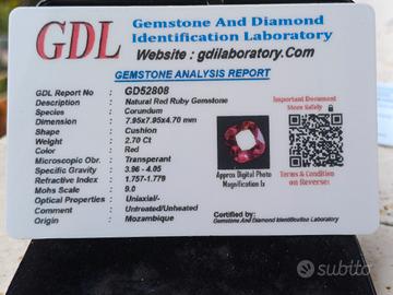 rubino colore rosso da 2.70 cti proveniente dal Mozambico con certificato. ottimo per anello