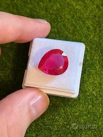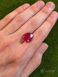 Rubino rosa 9.50 ct taglio pera certificato. Dimensioni 14x10x7 mm. La pietra è in perfette condizioni. Eccellente taglio e trasparenza. Testato con penna diamante.