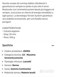 Scarpe Adidas Ultra Boost usate solo un paio di volte per fare dei medi.