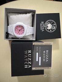 Vendo orologio Ruzza Watch Milano, modello con cassa e cinturino bianchi e quadrante rosa.