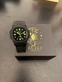 Bellissimo Ruzza Watch Nero con Quadrante Verde. Articolo originale, nuovissimo con tutte le sue pellicole e corredato di scatola e fattura d’acquisto.
