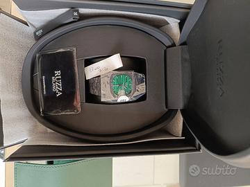 Il Ruzza Watch Luxury è unorologio Swiss Made in edizione limitata (100 pezzi), caratterizzato da cassa e bracciale in carbonio forgiato, quadranti in pietre naturali (malachite, onice, occhio di tigre, turchese, lapislazzuli) e movimento automatico SW200. Con un diametro di circa 42-43 mm, offre un design moderno, leggero e resistente.