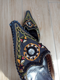 Usate una sola volta per una serata a tema orientale e usate solo all'interno. Suola praticamente nuova. Un po' sgretolata la soletta interna ma per il resto sono perfette. Misura 39