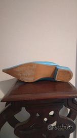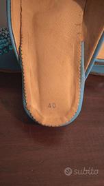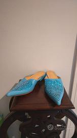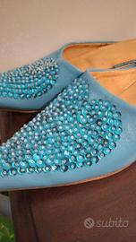 Sabot, ciabattine orientali, interamente in pelle turchese decorata con pailettes, suola in cuoio, misura 40. Indossate solo una volta.