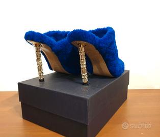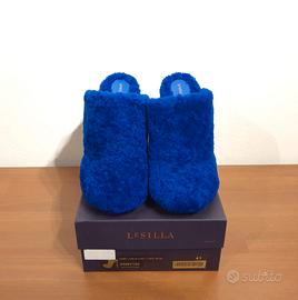Sabot, shearling, senza applicazioni, tinta unita, interno in pelle, punta tonda, tacco scultura, suola in cuoio e gomma