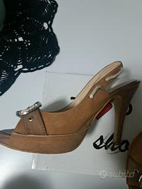 Sabot color beige con plateau di 2 cm e tacco di 12 cm. tg.40. Marca Top Shoes. Usate ma in buone condizioni.