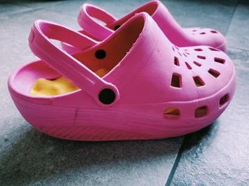 Sabot donna, fucsia e gialli, n 39, con soletta massaggiante, lavati e messi via. In buono stato, vendo a 4 euro.