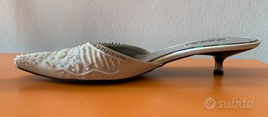 Sabot estivi color bianco, lavorati con perline. Marca Love Numero 38 Adatto per cerimonia e eventi eleganti Usati una volta