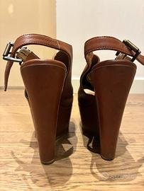 Particolari sabot in pelle comor cuoio altissimi con zeppa e areau h tot 12 cm. Aperti in punta e sul tallone fasciano il piede. Usati poco. Taglia 37