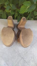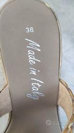 Zoccoli in pelle con tacco taglia 36. Made in Italy. Usati 1 volta. Condizioni eccellenti come da foto. Gli intrecci sono in pelle. Altezza tacco 11,5 cm, platou 3,5 cm.