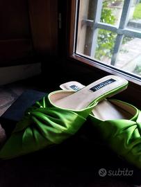 Sabot Vestante in raso verde con fiocco n.38 eleganti e raffinate ,mai usate in confezione originale.Vendo a 16 euro.