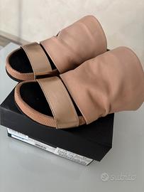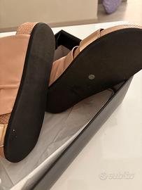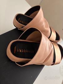Sandali Sabot marca Fabbrica dei Colli, ecopelle tg 37 nuovi mai indossati solo provati in negozio. Morbidi color rosa beige e laminati oro