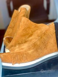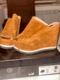 Vendo scarpe Unlace modello Zircon con tacco 12 e plateau 4 cm. Colore cuoio numero 39. Complete di scatola. Usate poco e in buone condizioni
