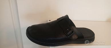 Sabot da uomo in pelle nera, usati poco, comodi e in buone condizioni. Ideali per uso quotidiano o lavoro.