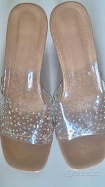 Sabot con brillantini su fascia in silicone tacco trasparente, calzata morbida e confortevole nr35