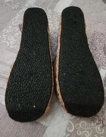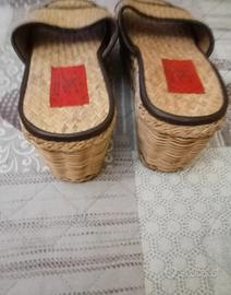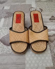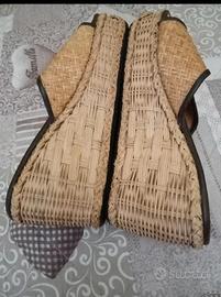 In rattan e paglia, la zeppa nel punto più alto misura 9 cm.