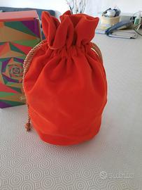 Sacca Mastro Raphael for Just. Colore corallo Tessuto esterno velluto Rivestimento interno poliestere Dimensioni: Altezza 20cm Larghezza 22cm Con scatola Mai utilizzata