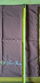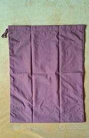 Sacca o custodia antipolvere Loro Piana colore malva o rosa antico. Al centro il logo del brand in colore chiaro. La sacca impermeabile presenta una classica forma rettangolare ed è dotata di una chiusura a coulisse in alto per proteggere il contenuto.