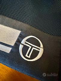 Bellissima sacca porta tutto Sergio Tacchini in tessuto tecnico: microfibra e poly-mesh colore Blu Navy con coulisse di chiusura e fermacoulisse in plastica. Ricamo del logo iconico ST in colore bianco.