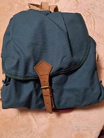 Sacca zaino Mulino Bianco, in cotone color verde scuro. Fine anni '80, nella scatola originale