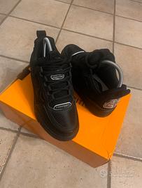 Sneakers stile skate total black con dettagli brillanti effetto “diamante” che danno un look elegante e street allo stesso tempo. Modello nuovo, mai usato, taglia EU 40, perfette sia per outfit casual che più hype. La scarpa ha una struttura robusta tipica da skate, suola comoda e resistente, tomaia nera con finiture lucide che riflettono la luce. Ideali per chi vuole uno stile pulito ma particolare, con un tocco luxury. Prezzo: 70€ -faor foto e video mentre imballo per possibili truffe