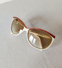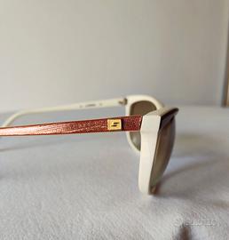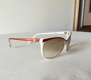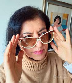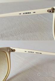Occhiali da sole vintage originali SAFILO modello Aurora 16B, prodotti in Italia. Montatura elegante in acetato color avorio con profilo superiore marrone-ramato, stile cat-eye leggero, molto raffinato e femminile.
