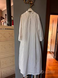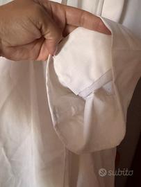 Vendo saio bianco da servizio all’altare o prima comunione, altezza 105cm. Stoffa per allungamento maniche. Con risvolto al collo e doppia pence. Macchia davanti. DA LAVARE. Unisex